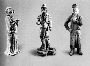到唐玄宗開元、天寶年間,社會(huì)經(jīng)濟(jì)的空前繁榮導(dǎo)致人們崇尚奢靡之風(fēng),促使三彩工藝達(dá)到它的最盛期。這時(shí)三彩俑的人物造型,體態(tài)肥滿豐腴,特別是女俑,高髻長裙,面容富態(tài),雍容大度,反映當(dāng)時(shí)社會(huì)流行的審美風(fēng)尚。人物造型準(zhǔn)確,輪廓曲線富于變化,顯示了唐代人物圓雕取得的高度藝術(shù)成就。