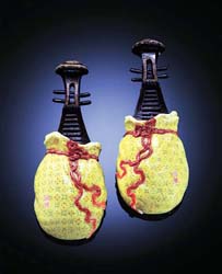 壁瓶在清代各朝均大量生產(chǎn),形式更多,其中乾隆時期的壁瓶更是達到了登峰造極的地步。乾隆時期的壁瓶,從紋飾來看,無論是釉上還是釉下的彩繪,或者是堆塑、鏤空、雕刻、貼花等工藝,都是非常講究裝飾工藝的,花色品種無不具備。其中一些釉色如真品一樣,配上形象逼真的造型,神形兼?zhèn),如蟹青釉仿出蟹形壁瓶、以翠綠釉仿出白菜壁瓶、以鱔魚黃釉仿出鰱魚形壁瓶等,皆鬼斧神工,形象生動。此次蘇富比拍賣行推出的“束帶琵琶包袱”壁瓶,就是通過釉色來模仿琵琶以及外面的包袱,可以說是栩栩如生,這也是受到市場追捧的重要原因。在乾隆時期還常以御題詩句配合壁瓶畫面,在2004年香港蘇富比的春拍上,清乾隆·御制剔紅雕趕珠龍紋嵌黃玉御題詩壁瓶,成交價達到了74.4萬港元,這也是目前此類壁瓶拍賣的最高價。