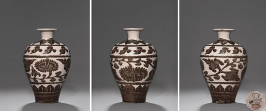 (■北宋 磁州窯刻花褐彩梅瓶 )