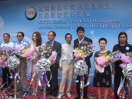上午11點,高陶潔具中國總部新展廳在一片歡樂祥和的氣氛中盛大開幕,主辦方高陶建材特意邀請了香港著名影星苗僑偉、溫碧霞出席剪彩儀式,剪彩儀式還邀請到了一批建筑行業(yè)的專家和學者,他們是現(xiàn)代裝飾雜志社副社長王平先生、中國建筑學會室內設計分會會長勞智權、CIID深圳專業(yè)委員會劉力平秘書長、高陶潔具中國總代理高陶建材董事長彭洪萼先生、高陶潔具中國總代理副總經(jīng)理周振宇先生、CIID東莞專業(yè)委員會會長兼新展廳設計師麥德斌先生、高陶中國各地的代理商以及來自廣州的知名設計師丁武、李智、尹鐵等,開幕結束后,大家紛紛在新展廳參觀留念。