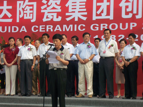 慶典儀式上,惠達集團執(zhí)行總經(jīng)理王彥慶首先致歡迎辭,國內(nèi)經(jīng)銷商代表、國外客商代表、董事長王惠文、唐山市市長張國棟、豐南區(qū)委書記劉建立、中國建材協(xié)會黨委書記孫向遠等領(lǐng)導(dǎo)發(fā)表了熱情洋溢的講話,河北建材工業(yè)協(xié)會發(fā)來了賀電,對惠達集團取得的成績表示祝賀,對惠達陶瓷集團的明天寄予厚望。