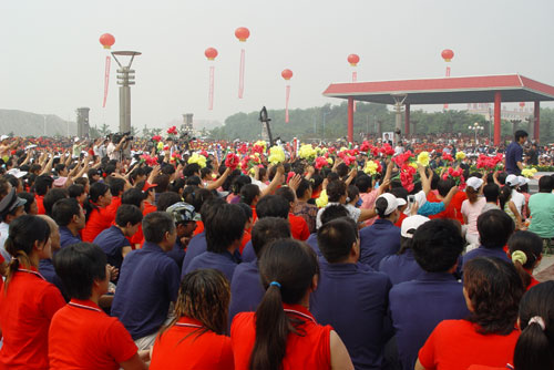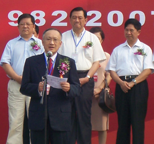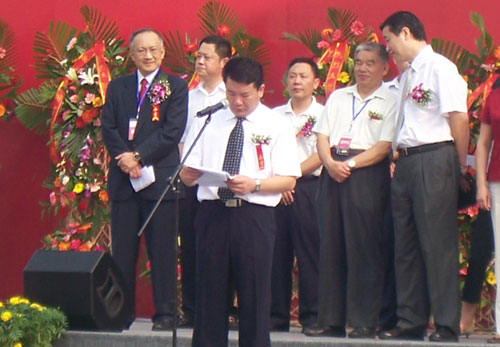 上午8:30分,隆重的慶典儀式正式開始。出席慶典儀式的有國務(wù)院參事室副主任蔣明麟,中國建筑材料聯(lián)合會黨委書記、常務(wù)副會長孫向遠,河北省人大常委會副主任白潤璋,全國工商聯(lián)副主席、原國家工商行政管理總局副局長甘國屏,河北省工商局副局長王國忠,唐山市委副書記、市長張國棟,市委常委、秘書長陳學(xué)軍,副市長王久宗,市人大主任鐘清杰,市政協(xié)主席張耀華,唐山市工商局、海關(guān)、商檢、外貿(mào)局領(lǐng)導(dǎo),中國五礦化工商會領(lǐng)導(dǎo),豐南區(qū)四大班子領(lǐng)導(dǎo)以及豐南區(qū)各局、各鄉(xiāng)鎮(zhèn)、大企業(yè)代表,以及來自全國各地的經(jīng)銷商代表,來自美國、俄羅斯、韓國、孟加位國等國外客商代表,惠達員工代表等共計6000人參加了慶典。
