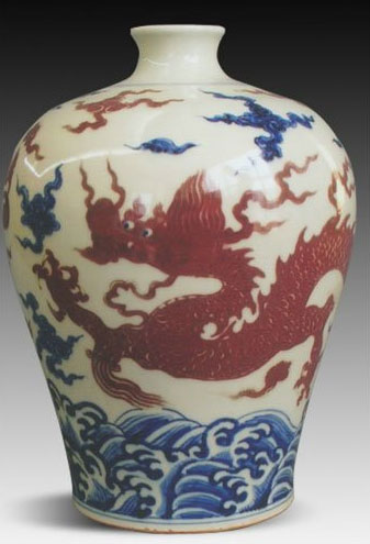 明永樂青花釉里紅海水云龍紋梅瓶 景德鎮(zhèn)明御窯廠遺址出土