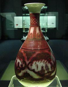 元代已有青花瓷器,釉里紅的燒制已較成熟,釉里紅是一種傳統(tǒng)的彩繪瓷器,是元代景德鎮(zhèn)制瓷業(yè)的重要成就。元朝官窯只景德鎮(zhèn)一處,官窯器內(nèi)均燒有“樞府”字號。元瓷釉厚,多仿鈞窯瓷器,以天蘭色兼帶紫斑為貴,花紋圖案有:劃花、印花、雕花等。這一時期出現(xiàn)了窯變、青花、釉里紅的技法。為釉下裝飾和以后的釉上裝飾創(chuàng)造了條件。這一時期的瓷器,除一部分保留了宋代的制瓷遺風(fēng),通常采用劃花、刻花、印花以外,又創(chuàng)造出用毛筆在胎上繪畫的方法。這種用彩料畫出花紋后,燒制的瓷器,就叫作“彩資”。“彩瓷”一般分為“釉上彩”與“釉下彩”兩大類。在胎坯上畫好花紋后,再上釉入窯燒制,稱為“釉下彩”在燒制好了的瓷器上再加以彩繪,又經(jīng)爐火烘燒而成的,叫作“釉上彩”,這時期的青花、釉里紅瓷器,就是屬于“釉下彩”。明代以后出現(xiàn)的新彩、五彩、粉彩等,都屬于“軸上彩”的范疇。
