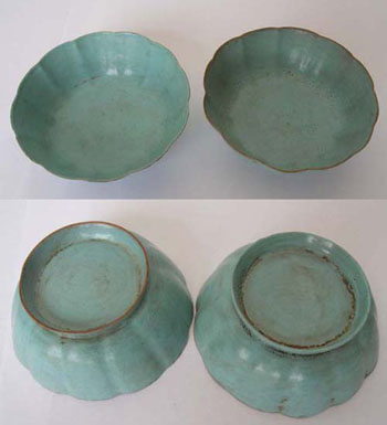 窯址在今河南鄭州,柴窯系后周柴世宗所燒,故以此姓為窯名,據(jù)說柴窯瓷器顏色以天青為主,瓷質(zhì)滋潤細(xì)媚。相傳柴窯器青如天,明如鏡,薄如紙。薄如紙一語,指釉汁而言,青如天一語,指柴窯以天青為主。但傳世極少,都未見到。