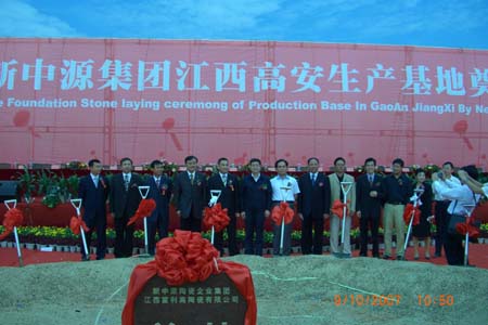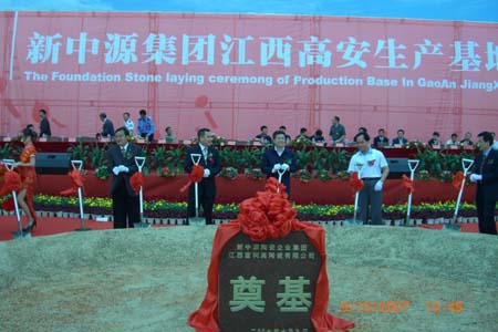 繼2007年5月新中源集團(tuán)高安生產(chǎn)基地成功簽約以來,時隔短短的五個月,10月9日,新中源集團(tuán)高安生產(chǎn)基地舉行了隆重的奠基儀式,江西省副省長孫剛,國土資源廳廳長劉積福,新中源陶瓷企業(yè)集團(tuán)董事局主席霍熾昌、宜春市委主要領(lǐng)導(dǎo)、新聞媒體等約600人出席了儀式,宜春市委副書記、市長龔建華在奠基儀式上致辭。