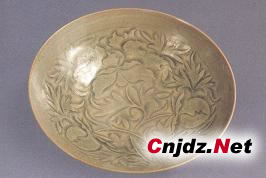 這件北宋刻花牡丹紋碗,高7.5厘米,口徑23.3厘米,底徑6厘米。敞口,弧腹,圈足,足削修規(guī)整,足底露胎,胎呈灰褐色,胎質(zhì)堅(jiān)密。碗內(nèi)刻花,一周弦紋下刻纏枝牡丹花葉紋,一花盛開(kāi),二蕾含苞待放,花葉上均劃出葉脈。該碗刀鋒犀利、瀟灑,深淺有致。牡丹花繁而不亂,既追求了形式變化,又能保持整體的和諧統(tǒng)一。花冠豐滿(mǎn),花葉分披,花枝纏繞,奔放流暢,給人以欣欣向榮之感。通體施以青釉,釉色青中閃黃,花紋清晰,濃淡相間,紋樣微凸,具有很好的視覺(jué)效果。牡丹花在中國(guó)傳統(tǒng)文化中寓意著富貴,器物上飾纏枝牡丹是耀州窯北宋中期最為盛行的題材,該碗當(dāng)為耀州窯鼎盛時(shí)期之作,代表了耀州窯刻花青瓷燒造的最高水平。     此碗現(xiàn)藏于甘肅省博物館。