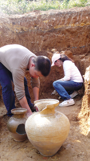 發(fā)現(xiàn)該墓的是南堡村村民朱明華,他家房子就在小山坡旁,與該墓僅一墻之隔。受今年第13號臺風(fēng)“韋帕”暴雨襲擊,該小山坡的黃泥被雨水沖刷掉落,露出一個(gè)罐狀的瓷器。朱明華發(fā)現(xiàn)后馬上向甌海區(qū)文博館報(bào)告了此事。
