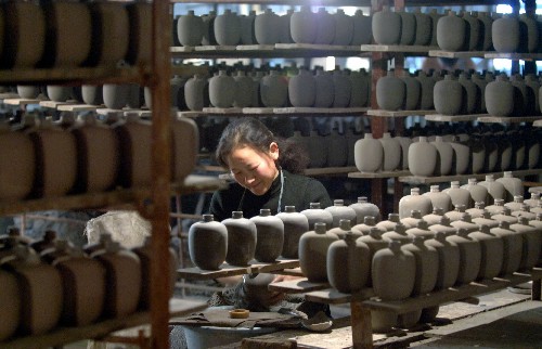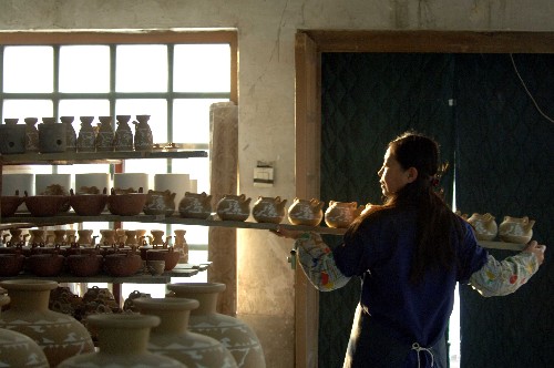 11月28日,在河北省峰峰礦區(qū)彭城古鎮(zhèn)一個(gè)磁州窯作坊,工人正在搬運(yùn)磁州窯制品。磁州窯是中國(guó)著名的民間陶瓷窯系,因其主要窯場(chǎng)位于古代磁州,即今天的河北峰峰礦區(qū)彭城、磁縣一帶而得名。磁州窯瓷器保留了大量古代民間繪畫、書法及反映民俗民風(fēng)的實(shí)物資料,形成了質(zhì)樸、灑脫、明快、豪放的藝術(shù)風(fēng)格,富有濃郁的民間色彩和鮮明的民族特色。 目前,河北峰峰礦區(qū)彭城古鎮(zhèn)仍有40多家利用古作坊和家庭居房開設(shè)的民間陶藝作坊,一批陶瓷藝人和民間工藝美術(shù)師仍在傳承著古老的磁州窯制作工藝。但磁州窯燒制技藝也面臨著老藝人退休、傳統(tǒng)生產(chǎn)方式和制作觀念改變、生產(chǎn)資金缺乏、傳統(tǒng)手工工藝失傳的危險(xiǎn),亟待搶救和保護(hù)。  新華社記者 鞏志宏 攝