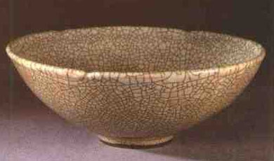 又稱哥瓷、哥窯瓷,南宋龍泉青瓷窯系中—些技術(shù)力量很強(qiáng)的作坊,受官窯工藝的影響,生產(chǎn)出的一種釉面滿布碎片紋的青瓷。瓷器釉層開裂片紋,是由于胎體原料受熱時(shí)膨漲系數(shù)大于釉層的膨漲系數(shù),在瓷器燒成后冷卻時(shí),胎體將表面玻璃釉層拉碎,即為百圾碎。由于胎釉密合極佳,釉層不剝落,也不劃手,除了出現(xiàn)奇特自然的片紋,沒有任何有礙使用之感。宋代龍泉窯的工匠人為控制胎釉成分作出這種奇特片紋的瓷器,為宋代瓷器藝術(shù)的百花園增添了光彩。龍泉地區(qū)考古發(fā)掘、調(diào)查發(fā)現(xiàn)的哥窯瓷器,都是灰白胎,質(zhì)地比較粗,施淺灰色青釉,釉質(zhì)肥潤(rùn),片紋大小相錯(cuò),深淺有致,裝匣時(shí)墊坯工具為墊餅或墊圈、墊燒工具的質(zhì)地很細(xì)膩。傳世瓷器中被認(rèn)為是哥窯作品的,還有鐵骨胎、深灰胎、土黃色胎的,釉色有炒米黃色、淺炒米黃色等。宋代沒有任何歷史文獻(xiàn)記載哥窯,或哥釉瓷,元孔齊《靜齋至正直記遺編》開始出現(xiàn)“哥哥洞窯”、“哥哥窯”,對(duì)哥窯特點(diǎn)的描寫不具體。到明洪武時(shí)曹昭在《格古要論》描寫哥窯器為“色青,濃淡不一,亦有鐵足紫口”,“元末新燒,土脈粗燥,色亦不好”。沒有說明哥窯和弟窯之間的關(guān)系。嘉靖四十年的《浙江通志》有更具體的描述。指出其產(chǎn)地在琉華山下的琉田鎮(zhèn),即龍泉的中心窯場(chǎng)大窯。《浙江通志》中第一次出現(xiàn)了章生一、章生二兄弟主一窯場(chǎng)的事,哥窯生產(chǎn)開片瓷,弟窯生產(chǎn)不開片的龍泉青瓷。哥窯弟窯故事的完備,從《靜齋至正直記遺編》到《浙江通志》成書,經(jīng)歷一個(gè)世紀(jì)。這個(gè)故事是逐漸編出來的,與歷史事實(shí)不符。多少年來考古工作者對(duì)龍泉窯系進(jìn)行大規(guī)模的拉網(wǎng)式調(diào)查,1979年浙江省考古研究所、中國社會(huì)科學(xué)院考古研究所、故宮博物院、上海博物館、中國歷史博物館、南京博物院等單位聯(lián)合進(jìn)行了大規(guī)模發(fā)掘、沒有發(fā)現(xiàn)章氏兄弟的廟、碑、墓葬及任問歷史遺跡、也沒有發(fā)現(xiàn)單獨(dú)生產(chǎn)哥釉瓷的窯址。與龍泉地區(qū)青瓷生產(chǎn)情況完全符合的明人著作,只有陸容的《菽園雜記》,他在龍泉訪古、談龍泉青瓷很多,但只字未提哥窯。情況應(yīng)該是這樣,釉面滿開片的哥釉瓷是龍泉青瓷中部分窯場(chǎng)的一種產(chǎn)品,很有特色,生產(chǎn)作坊不是一個(gè)獨(dú)立的瓷窯體系,后人錯(cuò)誤地把它們分為哥窯和弟窯兩個(gè)窯系。明清以后的哥瓷更加復(fù)雜化,因?yàn)榫暗骆?zhèn)有專門仿哥釉瓷的哥窯戶,這些仿品應(yīng)該和宋元哥釉瓷區(qū)分開來。(見下圖)