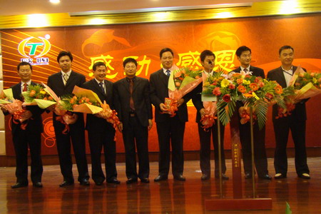 為表達(dá)一直關(guān)注與支持歐陶公司事業(yè)發(fā)展的員工及合作伙伴的感激之情,表彰晚會(huì)特意圍繞“感動(dòng)·感恩”主題,對“2007年度歐陶十大感動(dòng)人物”和“2007年度優(yōu)秀團(tuán)隊(duì)”進(jìn)行了表彰獎(jiǎng)勵(lì),公司歐陽天生、張俊峰和謝明輝等高層分別為獲獎(jiǎng)個(gè)人與團(tuán)隊(duì)頒發(fā)了證書和獎(jiǎng)金。此外,為感謝老員工多年對公司的不離不棄,公司還特意在晚會(huì)上為數(shù)十名貢獻(xiàn)3年以上青春與汗水的非股東員工送上了厚厚的禮物———每人5000元的現(xiàn)金。由公司員工自編自演的綜藝節(jié)目貫穿晚宴的全過程,為晚會(huì)增添了濃厚的喜慶色彩和歡樂、喜慶的文化氣息,一場壓軸的《感恩的心》集體手語表演,將表彰晚會(huì)推上高潮。