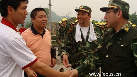 金意陶車隊向抗災(zāi)官兵交接救災(zāi)物資