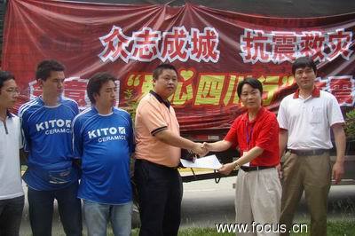 此次,KITO“愛心午一點鐘車隊安全到達(dá)中國紅協(xié)德陽救災(zāi)中心,KITO公司員工代表與紅十字協(xié)會邱部長簽署了總共26萬元的物資核實交接手續(xù)。