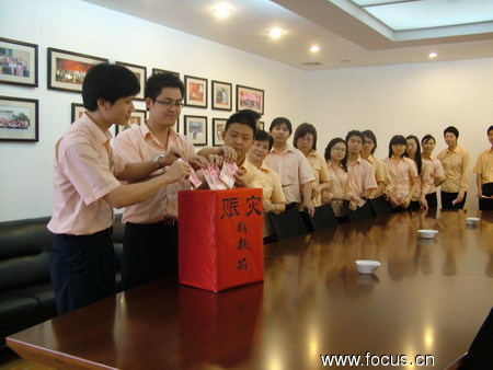 5月13日,英皇衛(wèi)浴公司董事總經(jīng)理梁慧枝女士得知四川的災(zāi)情之后,發(fā)動全體員工掀起了一場“賑災(zāi)捐款支援四川同胞”的募捐活動,并帶頭募捐了5000元。在梁慧枝女士的帶領(lǐng)下,英皇衛(wèi)浴公司總部的員工紛紛慷慨解囊,截至15日中午,英皇衛(wèi)浴員工的捐款金額已經(jīng)達到3萬元。