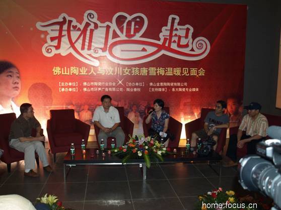 佛山市陶瓷行業(yè)協(xié)會秘書長尹虹先生, 金意陶“愛心四川行”援助人員,廣州電視臺赴一線記者等進(jìn)行了現(xiàn)場對話。并現(xiàn)場電話連線目前仍留守汶川學(xué)校的老師,災(zāi)區(qū)救援人員以及四川金意陶經(jīng)銷商,共同講述5.12地震以來陶業(yè)人對于汶川地震災(zāi)區(qū)的關(guān)注和援助行動,以熱誠的心溫暖在災(zāi)難中受傷的心靈,對話災(zāi)后重建及恢復(fù)生產(chǎn)情況。