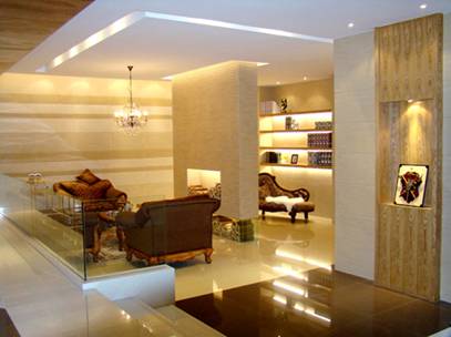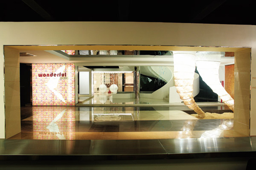 一層大廳取名為“蝶應”,用兩股纏綿的“龍卷風”與漫天飛舞的蝴蝶詮釋“蝴蝶效應”。一樓主要展示負離子磚和拋光磚,產(chǎn)品空間設計出于時裝專賣展示之手法,導入拋光磚鏤空雕刻之藝術,以氣派之勢突出拋光磚干掛,區(qū)域分布合理得體與大氣的大堂融為一體。