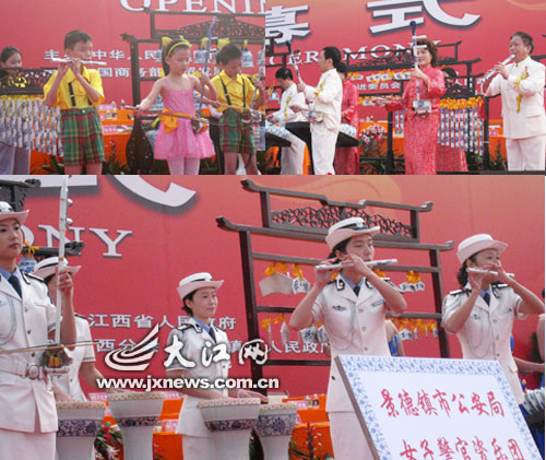 這兩年的瓷博會開幕式上,瓷樂表演一直成為媒體關注的焦點。今年,開幕式瓷樂演奏首次由4個瓷樂隊、80多個樂手同臺完成,除以往的專業(yè)瓷樂隊,來自臺灣地區(qū)和韓國的瓷樂表演藝術團體、老年大學瓷樂隊外,新成立不久的群藝館少兒瓷樂隊和警官瓷樂隊也加盟演出。在同一個舞臺上,全球愛好瓷樂的朋友,不分年齡和民族,在千年瓷都展現(xiàn)出陶瓷文化的無窮魅力。