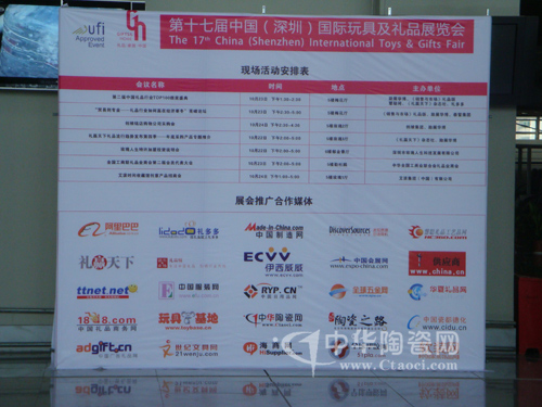 2009年10月22日至25日,由勵展華博展覽(深圳)有限公司主辦的第十七屆中國(深圳)國際玩具及禮品展覽會在深圳會展中心9大展館成功舉辦。展會以“世界禮品看中國”為主題,引領(lǐng)品質(zhì)生活的家居潮流,匯聚全球2900余家廠商,是本年度國內(nèi)規(guī)模最大的禮品類展會。中華陶瓷網(wǎng)m.de-watering.com、中國瓷都德化網(wǎng)www.cidu.cn及平面雜志《陶瓷之路》作為合作媒體參加展會,在6C23展位上展出,并且中華陶瓷網(wǎng)等已連續(xù)三屆成為中國禮品第一展的合作媒體。