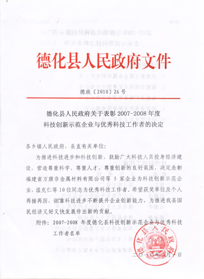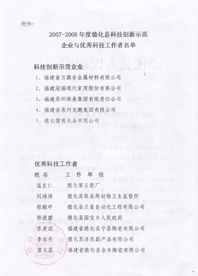 近日,中華陶瓷網(wǎng)、泉州市網(wǎng)興網(wǎng)絡(luò)科技有限公司總經(jīng)理——柯維太,被德化縣人民政府評(píng)為2007-2008年度德化縣優(yōu)秀科技工作者。