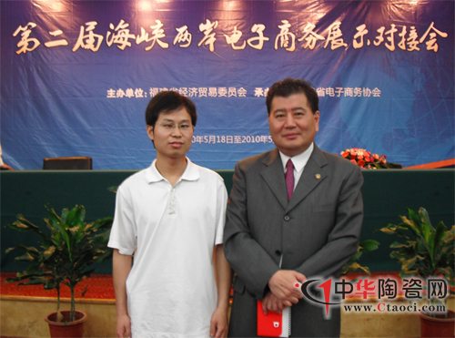 2010年5月19至5月20日,第二屆海峽兩岸電子商務(wù)展示對(duì)接會(huì)在福州舉行,中華陶瓷網(wǎng)總經(jīng)理柯維太受邀參加本次大會(huì)。本次大會(huì)由福建省經(jīng)貿(mào)委主辦、福建省電子商務(wù)協(xié)會(huì)承辦,臺(tái)灣中華電子產(chǎn)業(yè)協(xié)會(huì)和島內(nèi)多家企業(yè),以及我省電子商務(wù)企業(yè)代表近200人參加展示和對(duì)接。出席大會(huì)的有福建省經(jīng)貿(mào)委副主任吳秉成,福建省電子商務(wù)協(xié)會(huì)會(huì)長(zhǎng)、福建省經(jīng)貿(mào)委信息中心主任許維健,福建省電子商務(wù)協(xié)會(huì)秘書(shū)長(zhǎng)、福建省經(jīng)貿(mào)委信息中心副主任楊小利,福建省電子商務(wù)協(xié)會(huì)副秘書(shū)長(zhǎng)楊允,臺(tái)灣中華電子商務(wù)協(xié)會(huì)會(huì)長(zhǎng)謝長(zhǎng)峻等等。