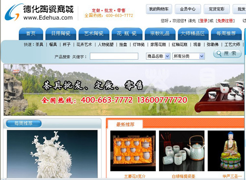 德化陶瓷商城(www.edehua.com)創(chuàng)辦于2006年6月,現(xiàn)為中國電子商務(wù)協(xié)會(huì)會(huì)員、中國陶瓷工業(yè)協(xié)會(huì)會(huì)員、福建省電子商務(wù)協(xié)會(huì)常務(wù)理事、中國電子商務(wù)服務(wù)聯(lián)盟成員。平臺(tái)系由德化縣科技局主管、中國行業(yè)電子商務(wù)網(wǎng)站100強(qiáng)——中華陶瓷網(wǎng)主辦,泉州市網(wǎng)興網(wǎng)絡(luò)科技有限公司運(yùn)營,并與公司旗下的中華陶瓷網(wǎng)、展會(huì)期刊《陶瓷之路》、中國瓷都德化四大平臺(tái)并列為“福建省德化縣陶瓷公共信息服務(wù)平臺(tái)”。平臺(tái)主要采用“B2B+B2C+平面雜志+行業(yè)展會(huì)”的創(chuàng)新運(yùn)營模式,較大范圍、更為全面地為行業(yè)企業(yè)進(jìn)行線上線下大力推廣。2009年開始,公司加大對網(wǎng)絡(luò)購物(B2C)、市場渠道的投入,德化陶瓷商城被德化縣科技局列為“德化陶瓷網(wǎng)絡(luò)銷售服務(wù)平臺(tái)”,平臺(tái)成為福建省、泉州市、德化縣科技計(jì)劃項(xiàng)目;2010年3月,德化陶瓷商城與支付寶合作,成為支付寶特約商家;2010年9月,德化陶瓷商城成為國家科技富民強(qiáng)縣專項(xiàng)行動(dòng)子項(xiàng)目。