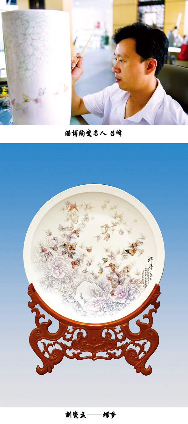 呂峰,1970年生于淄博,擅長(zhǎng)陶瓷彩繪及刻瓷藝術(shù)。從藝二十幾年來,多次為國(guó)內(nèi)外政要、名流刻制肖像。論文及個(gè)人作品在國(guó)家級(jí)美術(shù)期刊《美術(shù)大鑒》發(fā)表,多幅作品被中國(guó)(淄博)陶瓷館、上海藝博會(huì)收藏。在全國(guó)及省級(jí)創(chuàng)作評(píng)比中多次獲獎(jiǎng)。其作品以細(xì)膩見長(zhǎng),追求淡雅氣質(zhì)與精細(xì)刻畫相結(jié)合,在刀法運(yùn)用、用筆著色上不取俗艷以趨時(shí),大膽創(chuàng)新,形成了自己的創(chuàng)作風(fēng)格。代表作有:"金陵十二釵"系列手彩瓶、20寸"蝶夢(mèng)"刻瓷盤、"百蝶爭(zhēng)艷"手彩瓶等,深受收藏家們的喜愛。