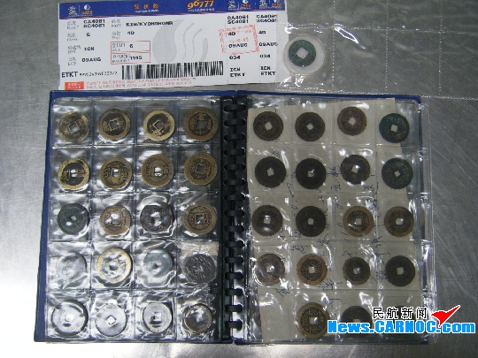 民航資源網(wǎng)2011年8月9日消息:8月9日11時,青島流亭國際機場(簡稱“青島機場”)查處一名韓國籍旅客在行李中私藏夾帶中國文物,截獲大量燕明古錢幣及陶器、字畫等珍貴文物。
