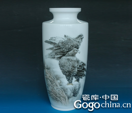 圖:陶瓷藝術花瓶大師手繪雙鷹圖