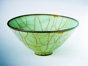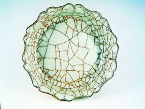 開片是瓷器釉面的一種自然開裂現(xiàn)象,胚、釉膨脹系數(shù)不同,焙燒后冷卻時(shí)釉層收縮率大,形成裂紋,是瓷器燒制過程中的一個(gè)缺點(diǎn)。當(dāng)人們掌握了開片的規(guī)律后,燒制出來的冰裂紋就成了一種特殊裝飾。北宋末期至南宋時(shí)期100多年間的宮廷御用瓷,汝、官、哥皆為開片瓷器。這些飲食起居之器源源不斷地送到皇室顯貴們手中。周先生認(rèn)為,個(gè)別現(xiàn)象可以說是偶然,如此規(guī)模的相同傾向必然是有意為之的。同期的鈞窯、定窯以及唐代越窯和邢窯都不產(chǎn)冰裂紋瓷器,甚至南宋龍泉燒制的釉面光潔完整的青瓷、從實(shí)用效果來說也遠(yuǎn)勝汝、官、哥。