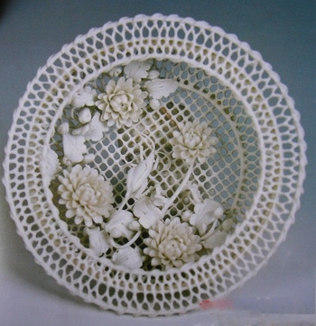 張新喜因積勞成疾于1974年7月11日病故,終年62年。其代表作有:鏤雕龍舟、堆雕葫蘆瓶、荷花壇、捏雕花籃、花篩、水淺以及園雕水果、蔬果等,從中可以領(lǐng)略到張新喜傳統(tǒng)瓷雕工藝的扎實(shí)功底。