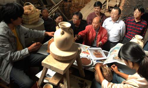 9月26日,湖南工藝美術(shù)職業(yè)學院的教授來到望城區(qū)銅官鎮(zhèn)陶藝大師胡武強家,了解長沙銅官窯技藝傳承現(xiàn)狀。為弘揚湖湘民間工藝文化,該校開展“讓民間藝術(shù)走進大學校園”系列活動,并投入資金相繼為湘繡、竹藝、陶瓷等行業(yè)的省工藝美術(shù)大師建立了工作室。
