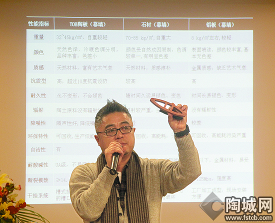 陶城網(wǎng)報(bào)道 “陶板與傳統(tǒng)陶瓷產(chǎn)品間并沒(méi)有直接的競(jìng)爭(zhēng),它是與幕墻領(lǐng)域原有的石材、鋁材、玻璃等材料競(jìng)爭(zhēng),同時(shí)也豐富了幕墻的材料。”2月16日,福建華泰集團(tuán)有限公司董事長(zhǎng)吳國(guó)良在佛山出席其旗下的TOB陶板外銷出口推介會(huì)上,介紹了干掛空心陶瓷板(以下簡(jiǎn)稱“陶板”)產(chǎn)品逐步擴(kuò)大市場(chǎng)份額的意義。