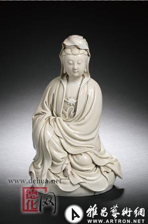 檢查十五年來國際拍賣市場中,德化白瓷每年的主要成交記錄,可以清楚地看出價格變動的曲線和不同器型的價格差。這是一份很有意思的資料,1997年3月紐約蘇富比‘清中期18世紀渡海觀音立像“(H:50.8)成交價29,900美元;12月倫敦佳士得“清中期18世紀如意觀音坐像”(有印章)成交價19,550英鎊;9月紐約蘇富比“清中期18世紀持經(jīng)觀音立像”成交價16,000美元;4月北京嘉德“清17世紀丁水奇珍印章獅耳香爐”(明晚期印文山水珍藏)成交價11,000元人民幣。