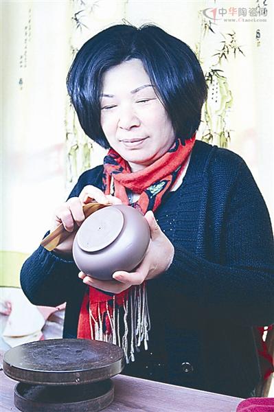 余美珍,典型的江南女子,秀麗溫婉,畫(huà)著淡淡的妝容,服裝精致,舉止優(yōu)雅,表現(xiàn)出十足的女子性情和一種熱愛(ài)生活的態(tài)度。這樣一個(gè)世俗世界里的美麗女子,安靜地生活,快樂(lè)地創(chuàng)作,因有著一份對(duì)紫砂的熱愛(ài),多了一份個(gè)性,和周遭的人又有了一點(diǎn)不一樣,就像在這春日的暖陽(yáng)下,徐徐展放的一朵彼岸花,為紫砂藝苑帶來(lái)一片芬芳。