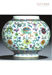 清代乾隆斗彩器以制作工藝精致、色彩鮮麗、紋飾更趨圖案化為特征,于淡雅粉潤(rùn)中顯亮麗,于纖細(xì)嬌巧中見(jiàn)挺雋,既柔潤(rùn)蘊(yùn)藉又光彩照人。像此罐中繪制的八吉祥,又稱“八寶”,在藏傳佛教中象征佛教威力的八種物象,作為一種吉祥圖案使用最早見(jiàn)于元代,明清時(shí)成為一種常見(jiàn)的瓷器裝飾紋樣,乾隆時(shí)更為流行。