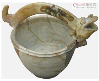 在三彩人物杯中,有體態(tài)肥美,深目高鼻,身著交領(lǐng)短袖衫,以褐彩點染顏面,懷抱一角杯的胡姬形象;有體態(tài)豐滿,深眼睛高鼻梁,滿臉胡須,頭帶尖尖帽,懷抱一角杯的西亞壯漢形象。邛窯生產(chǎn)的此類人物造型的器皿,絕不是偶然的臆造,而是源于對當(dāng)時社會生活的體驗和觀察,是唐、宋時期我國和西域各國交往頻繁的藝術(shù)寫照,或許還是對外貿(mào)易的需要。