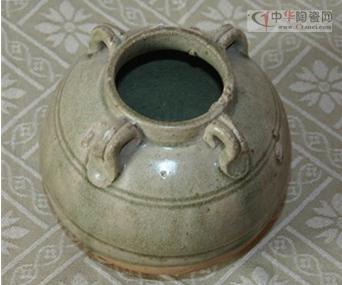 酒缸類:是所有酒具中器型最碩大的一類,主要用于釀造和儲藏酒漿。這類大酒缸規(guī)格大,容量較大,唐代邛窯褐彩花卉紋六耳大罐,腹圍長達(dá)143厘米,高達(dá)48.5厘米。因此大酒缸多數(shù)設(shè)四個系(耳)和六個系(耳)。橋形系或條形系兩兩對稱。系的設(shè)置顯然是方便用繩索系牢挑抬搬動,遠(yuǎn)途運輸。酒缸以盤口、唇口和子口為多,即使是敞口,口沿也是外斜或外折的,缸口的如此設(shè)計顯然是方便封口以免灑漏和走了酒氣。少數(shù)大酒缸甚至還設(shè)有雙重蓋子。成都一位收藏家收藏的一件唐代邛窯褐色彩繪四耳大罐,高45厘米,最大腹徑32厘米,胎硬質(zhì)堅,釉色均勻,胎釉結(jié)合緊密,尤為獨特的是這件大罐有內(nèi)外兩重蓋子,顯然這也是為了防止灑漏和走酒氣。