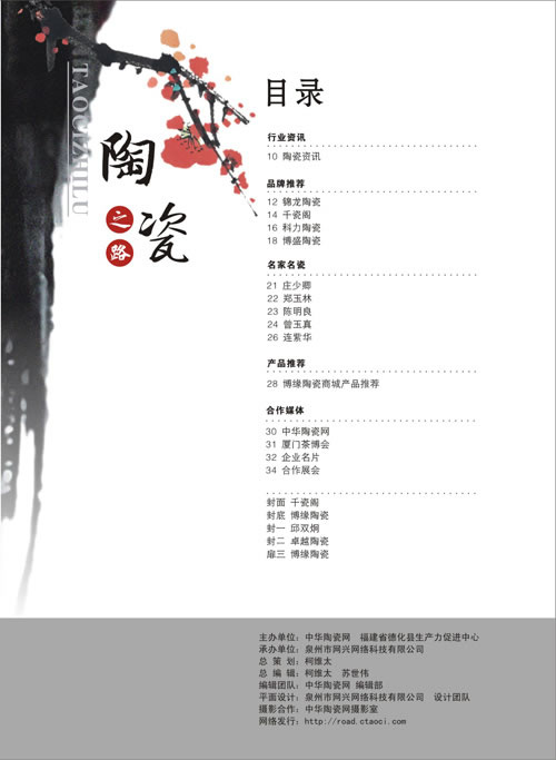 《陶瓷之路》每三個月發(fā)行一期,平面發(fā)行為每期5000-10000本,在中華陶瓷網(wǎng)road.ctaoci.com同步發(fā)布。