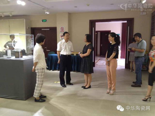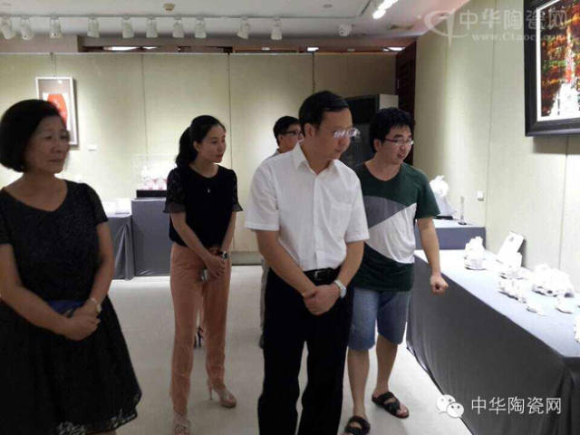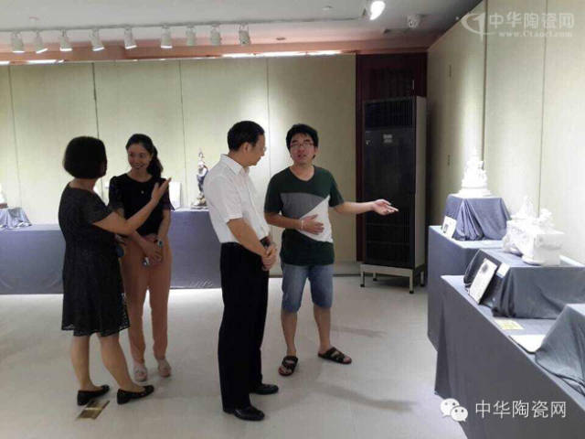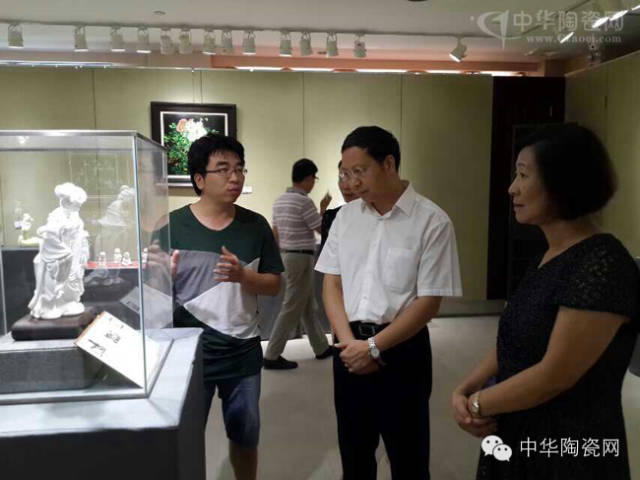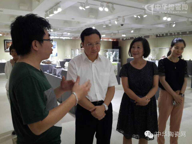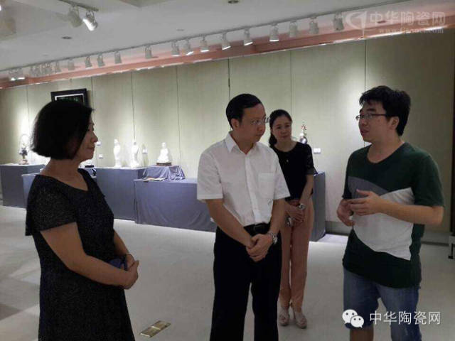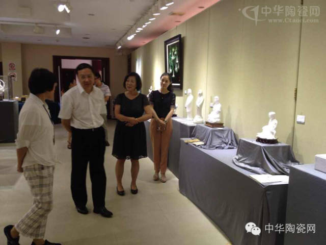 2014年8月29日,當代德化陶瓷名家作品展進行到第9天,上午廣州越秀區(qū)區(qū)長——王煥清(上圖中)在廣州嶺南會展覽館館長——何向芹(上圖右)的陪同下參觀了名瓷展,中華陶瓷網(wǎng)及博緣陶瓷副總經(jīng)理——蘇世偉(上圖左)向王區(qū)長詳細介紹了名瓷展情況及部份參展作品。