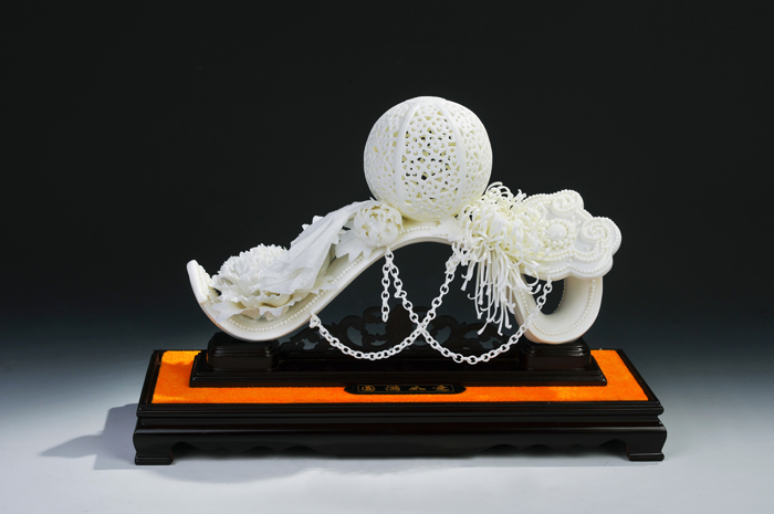 簡介:福建工藝美術珍品館、德化陶瓷博物館收藏,多次獲金獎,以如意棒為主體,圓球代表圓滿,蘊含著“萬事如意”、“美美滿滿”的美好意象。作品純手工制作,精雕細刻,造型和諧。