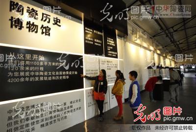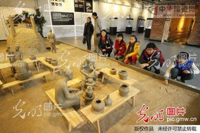 2015年10月25日,游客在河北省張家口市宣化國玉陶瓷有限公司陶瓷歷史博物館參觀。 當日,河北省張家口市宣化國玉陶瓷有限公司陶瓷歷史博物館對游人開放。2014年,宣化區(qū)被列為全國老工業(yè)區(qū)搬遷試點,國玉陶瓷有限公司按照規(guī)劃整體搬遷,該公司投資5000萬元在老廠區(qū)保留部分老生產(chǎn)線建設陶瓷歷史博物館,博物館面積1100平方米,通過圖片及實物展示從古至今的陶瓷工業(yè)發(fā)展史,用蠟像等復原原始陶瓷生產(chǎn)現(xiàn)場,為游客提供制陶體驗服務,全面展現(xiàn)我國深厚的陶瓷文化。