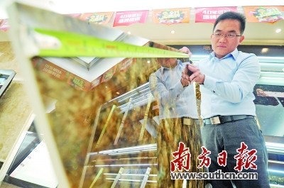 邱軍介紹,這種超白磚陶瓷深受歐美市場的歡迎,相比國外高昂的售價(jià),鷹牌的超白磚已能做到同品質(zhì)低價(jià)格。“國外要求非?量,瓷磚上不能有一絲的波浪紋、一個(gè)小黑點(diǎn)。”邱軍說。在鷹牌展廳內(nèi)陳列的超白磚,表面光滑近乎白紙。