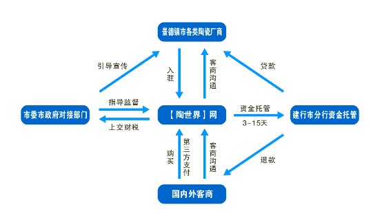 結(jié)合建設(shè)銀行景德鎮(zhèn)市分行對(duì)所有交易資金托管,保障了交易資金的安全,大大提高了買賣雙方的公信力。通過多種推廣方式,讓國(guó)內(nèi)外的客商第一時(shí)間看到發(fā)布的產(chǎn)品。保證了每天的交易數(shù)量,這樣就把全市分散的商家集中到一起,統(tǒng)一對(duì)外宣傳,改變了以往景德鎮(zhèn)陶瓷市場(chǎng)分散零亂的現(xiàn)象。入駐商家還通過網(wǎng)站動(dòng)態(tài)充分了解市場(chǎng)需求,針對(duì)市場(chǎng)要求專業(yè)創(chuàng)新制作,提高設(shè)計(jì)制作水平。市場(chǎng)開發(fā)拓展則完全交由【陶世界】網(wǎng)來實(shí)現(xiàn)。見如下框架圖:
