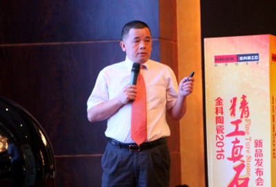 發(fā)布會現(xiàn)場,金科銷售顧問傅世莊上臺致辭,分析了當前的市場以及金科陶瓷的應對策略和發(fā)展方向,讓經銷商更深入了解行業(yè)形勢以及明確經營方向。傅總表示,金科陶瓷2016年將加強產品開發(fā),優(yōu)化產品結構,淘汰落后產品,加強終端銷售指引,為品牌和經銷提供客戶資源和開發(fā)渠道。