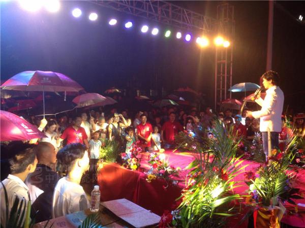 現(xiàn)場天氣下起小雨,但仍然阻擋不了現(xiàn)場觀眾的熱情,百人冒雨觀看小周華健演出;
