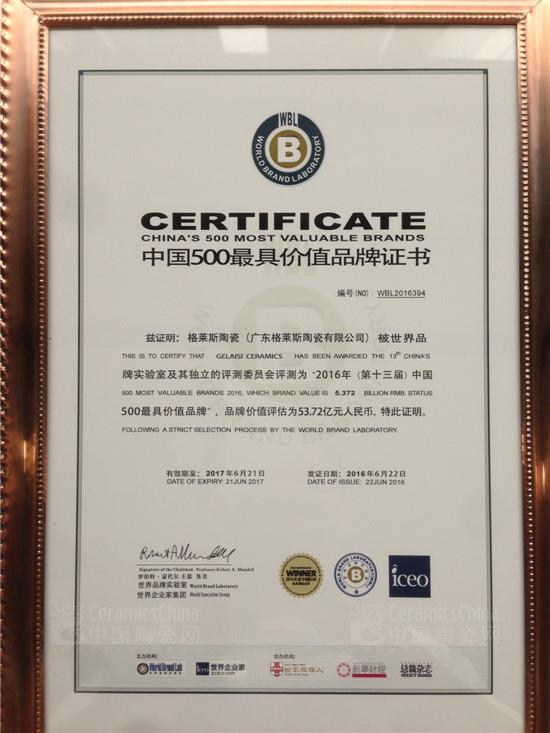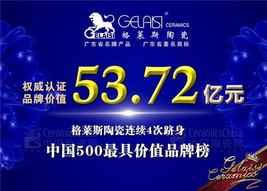 格萊斯陶瓷連續(xù)4次躋身中國500最具價值品牌