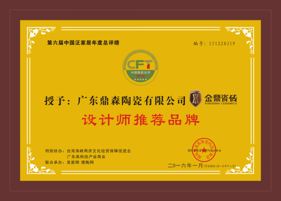 黃先生表示跟著這樣的隊(duì)伍走,前景十分可觀,事實(shí)證明,他的選擇是對(duì)的。金鼎陶瓷品質(zhì)有保障,性價(jià)比高,是陶瓷一線品牌(Ceramicfirstbrand)和設(shè)計(jì)師推薦品(Designersrecommendbrand),并連續(xù)兩年獲得中國(guó)陶瓷十大品牌(Chinaceramictoptenbrands)!