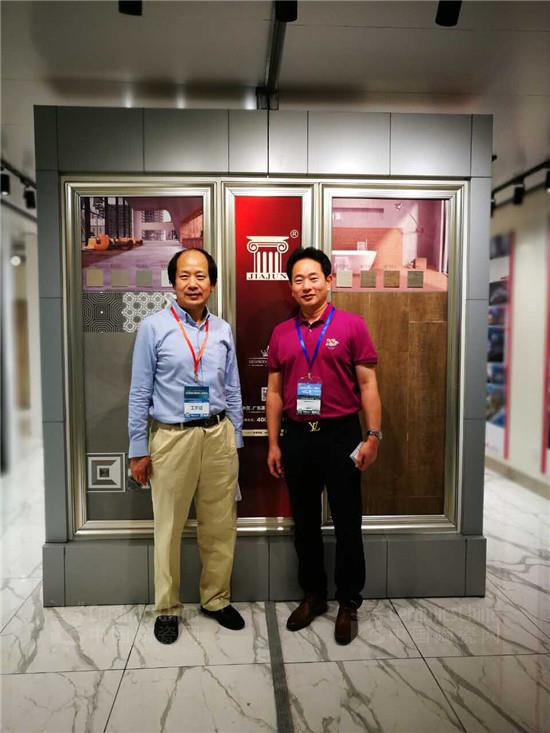上海現(xiàn)代設計院長王傳順(左一)、廣東嘉俊陶瓷有限公司董事長助理王常德(右一)