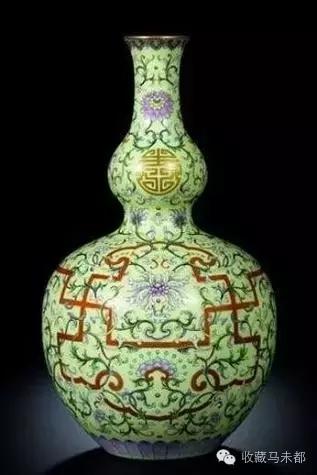 在2010年10月7日香港蘇富比拍賣會(huì)上,清乾隆萬(wàn)壽連延圖長(zhǎng)頸葫蘆瓶以約2.5億港元被香港收藏家張永珍博士拍得。乾隆時(shí)期一種以細(xì)針狀物在釉面上刻畫卷草紋、鳳尾紋和花卉紋以表現(xiàn)錦地效果的裝飾工藝軋道錦地備受推崇,這只長(zhǎng)頸葫蘆瓶就是這一時(shí)期的杰作,瓶上所繪紋飾色澤艷麗多變,重疊交錯(cuò),構(gòu)圖精巧,細(xì)致繽紛。