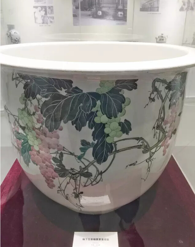 釉下五彩碩果累累花缸,是一代宗師吳壽祺先生晚年的經典之作,口徑達到70厘米,純手工打造,氣勢磅礴、技藝精湛。1964年,它曾經作為國慶獻禮瓷陳設在人民大會堂湖南廳。時隔51年后,這件作品首次回到它的原產地展出。